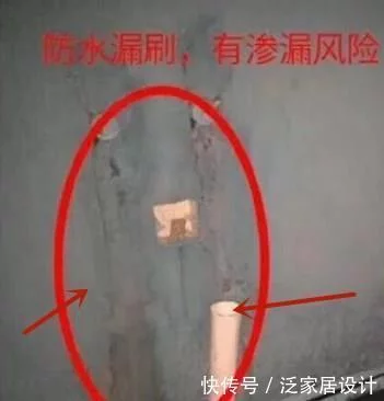 即刷完防水层还能见底部基层?那说明防水层刷太薄了,极可能是标准2遍却只刷了一遍!所以日后此处墙面基本会渗水!